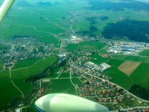 Im rechten oberen Bildteil sieht am das Gewerbegebiet Bahnhof.