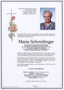 Hans Schmidinger war seit 1947 verheiratet mit Maria, geborene Reiter und hinterließ einen Sohn.