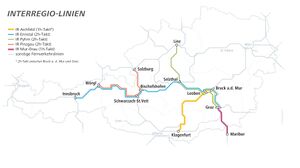 - IR-Linie Aichfeld: Graz – Bruck an der Mur – Knittelfeld – Unzmarkt – Klagenfurt