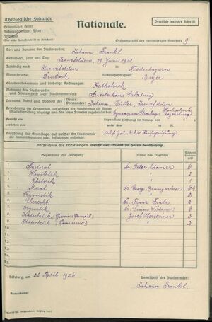 Johann Frankl empfing die Priesterweihe am 18. Juli 1926 in Salzburg. Die Primiz feierte er im heimatlichen Windberg.