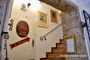 Aufgang in das Café Mozart im Niederleg-Durchhaus.