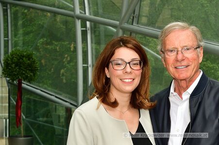 Samantha Teufel mit dem Besitzer des Hotels Dr. Hans-Peter Wild anlässlich der Eröffnung des Hotels nach der letzten Umbauphase im Mai 2018.
