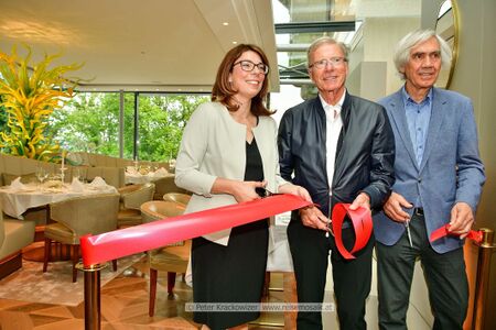 Bild 2: Bei der offiziellen Eröffnung des Restaurants "The Glass Garden" am 15. Mai 2018, von links: Samantha Teufel, Dr. Hans-Peter Wild, Besitzer und Arch. DI Dr. Volkmar Burgstaller;