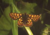 Der hübsch gezeichnete Skabiosen-Scheckenfalter (Euphydryas aurinia) aus der Familie der Edelfalter (Nymphalidae) ist einer der wenigen Schmetterlinge, die europaweit unter Naturschutz stehen. Er kommt sehr lokal auf Streuwiesen und Flachmooren vor und ist auch in Salzburg durch die Zerstörung dieser Lebensräume stark bedroht. Die Raupe lebt an Teufelsabbiss (Succisa pratensis).