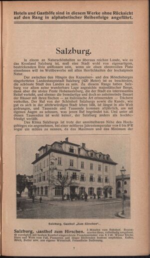 "Mäßige Preise!" heißt es in einem Prospekt von Seinerzeit, und weiters: Hotel "zum Hirschen", nächst den Bahnhöfen, Fernruf 1333. Altrenommiertes, gut bürgerliches Haus in freier Lage mit Fernsicht. 60 mit allerneuestem Komfort ausgestattete Fremdenzimmer mit 110 Betten, den Bedürfnissen auch des verwöhntesten Publikums entsprechend. Fließendes Kalt- und Warmwasser in allen Zimmern, im ganzen Haus Lichtrufanlagen, Haustelephon und Staatstelephon-Anschluss. Prächtig ausgestattete Bäder in den Stockwerken zur Benützung zu jeder Tageszeit. Zentralheizung im ganzen Hause. Heimlich eingerichtete Gastlokalitäten, Speisesaal, Frühstücksterrasse, Sommergarten. Beste Wiener Küche."