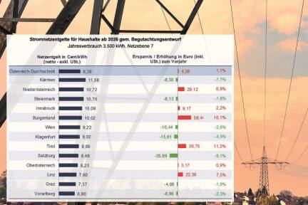 Nach dem drastischen Anstieg der Netzkosten 2025 wird es im kommenden Jahr für einen guten Teil der Haushalte wieder besser. Am Montag hat die Energieregulierungsbehörde E-Control die Vorlage für die Netzentgelte 2026 in Begutachtung geschickt. Daraus geht hervor, dass die Tarife im Österreich-Durchschnitt