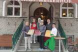 Das Rezept stammt aus der Lehrzeit des Spitzenkochs, es ist eine Mitschrift aus seinem Heft aus dem Jahr 1976/77. Das war kurz bevor die Tiefkühl-Germknödel ihren Siegeszug angetreten sind. Die für 80 Stück angegebenen Zutaten werden heruntergerechnet. Am Ende sollen zwölf kleine Germknödel entstehen, wobei jeweils zwei eine Portion ausmachen. Dazu benötigt man: 20 g Germ, 1/8 Liter Milch, 500 g glattes Mehl, 100 g Butter, 20 g Zucker, 1 Ei, 1 Eidotter, Prise Salz, Orangenzesten und Powidl zum Füllen. Außerdem: gequetschten oder gemahlenen, mit Staubzucker vermischten Mohn. Das Wichtigste sei, sagt Rudi Obauer, dass man die Zeitangaben im Rezept nicht ernst nehme. Denn auch wenn dort stehe, dass der Teig eine Stunde gehen soll, gelte: "Der Teig tut, was er will." Und das könne dann auch am Wetter liegen. Sicher ist nur eines: Entscheidend für das Gelingen ist die richtige Temperatur. Schon eine zu kalte Küche oder eine, in der es - was Gott verhüten möge - zieht, kann alles ruinieren. Wenn es um das Auflösen des Germs geht, ist meist von lauwarmer Milch die Rede. "Aber was ist lauwarm?", fragt Rudi Obauer und verdeutlicht: "Wenn die Milch mehr als 32 Grad hat, dann geht es nicht mehr, dann ist der Germ hin. Besser ist es, du stellst die Milch aus dem Kühlschrank und verwendest sie, wenn sie Raumtemperatur hat. Und gib kein Salz zum Dampfl, sondern Zucker, weil der treibt den Teig an." Die Mitköchin hält sich an die Vorgaben, macht ein Dampfl und verarbeitet das dann mit den restlichen Zutaten zu einem eher festen Teig. Dann heißt es warten - und hoffen. Das Blättern im Arbeitsberichtsheft von Rudi Obauer hilft beim Zeitvertreib. Vier Tugenden werden da dem Kochlehrling bei seinem Dienstantritt abverlangt: Sauberkeit, Pünktlichkeit, Gewissenhaftigkeit und Pflichtgefühl. "Gewohnheitsmäßige Unpünktlichkeit zieht unangenehme Folgen nach sich", steht dort in schöner Handschrift des jugendlichen Rudi Obauer. Und: "Gewissenhafte Durchführung aller Arbeiten schafft die Voraussetzung für das Vorwärtskommen im Beruf." Gewissenhaft gearbeitet dürfte auch die Redakteurin haben, denn der Germteig zeigt sich in Bestform. Wie werden aus der Kugel jetzt Knödel? Indem man den Teig in zwölf Kugeln teilt? Rudi Obauer lächelt angesichts solch grober Unkenntnis milde. "Nein, den Teig musst du messerrückendick ausrollen und dann in zwölf Vierecke schneiden." Auf die Vierecke kommt jeweils eine Portion Powidl. Weil den aber nicht jeder mag, stellt sich die Frage, ob man auch andere Füllungen wie Schokoaufstrich verwenden kann. "Da musst du aufpassen, weil die sind nicht so fest wie Powidl und weichen dir den Teig auf. Wenn, dann musst du das mit Bröseln oder geriebenen Nüssen mischen. Oder du machst saure Varianten und füllst die Knödel mit Grammeln oder einer Pilzfülle", sagt er. Es bleibt bei Powidl und einer zweiten süßen Variante. Die Ecken und Kanten der Teigstücke werden mit den Fingern zusammengepresst und die Knödel mit der Nahtstelle nach unten auf ein Backpapier gelegt, wo sie unter einem Baumwolltuch etwa eine halbe Stunde ruhen. Danach gart man sie zwölf Minuten über Dampf. In der Zwischenzeit lässt sich - je nach Wunsch - eine Vanillesauce zubereiten oder die Butter zum Übergießen der Knödel schmelzen. "Gratuliere", sagt Rudi Obauer beim Anblick des mit Mohn und Zucker angerichteten Knödels. Nach dem Anstechen folgt ein "Du bist a Wucht!". Die Knödel sind es auch.